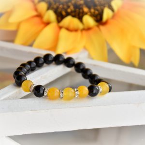 Sárga Jade és Ónix ÁsványkarkötőSárga Jade és Ónix Ásványkarkötő