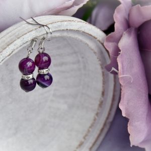 Lila Achát fülbevalóLila Achát Trio Ásványfülbevaló