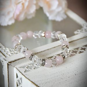 Rózsakvarc Swarovski Ásványkarkötő