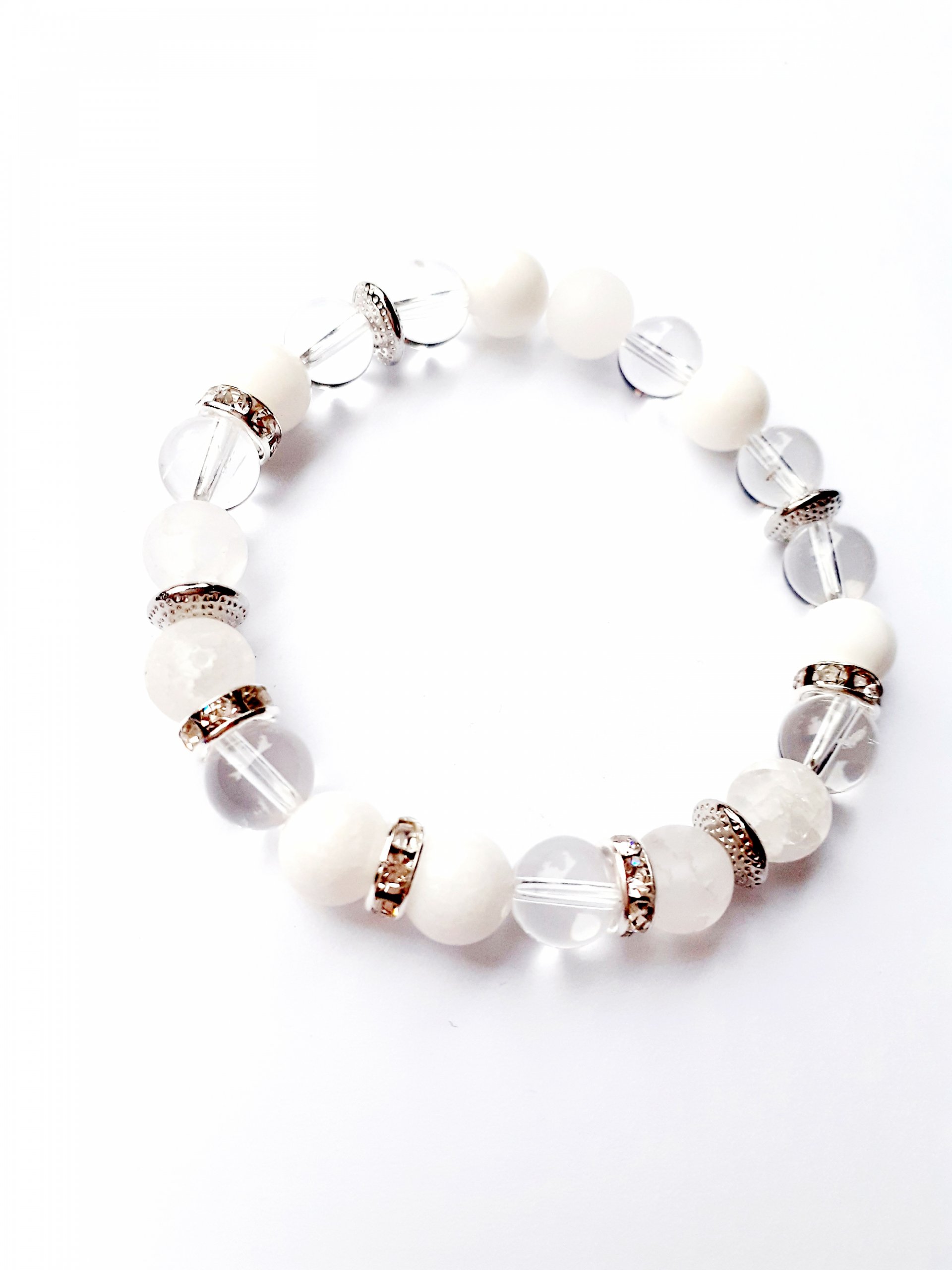 A Szeretet karkötője- Hegyikristállyal (matt és roppantott). Kézműves termék, nikkelmentes, csillogó rondellel. Egyedi kérés és méret esetén, fordulj hozzám bizalommal!