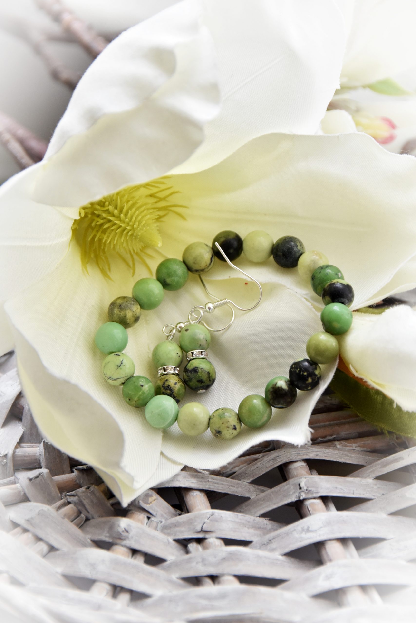 8 mm-es Ausztrál Nefrit Jade ásványból készült kézműves ékszer.