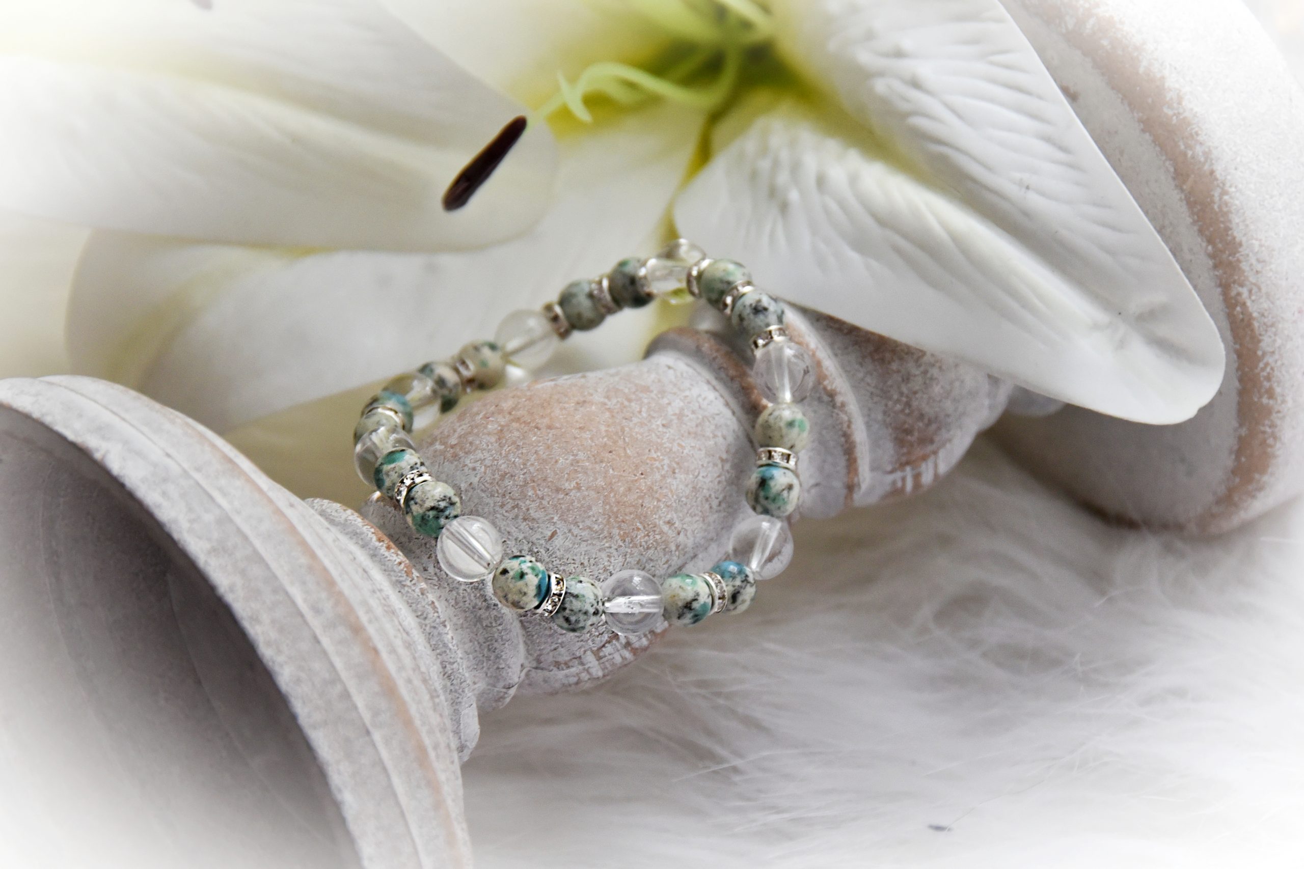 8 mm-es Hegyikristály és 6mm-es K2 ásványból készült karkötő. Kézműves ékszer, gumidamillal elkészítve. Válaszd ki a számodra megfelelő méretet! Egyedi kérés és méret esetén, fordulj hozzám bizalommal!