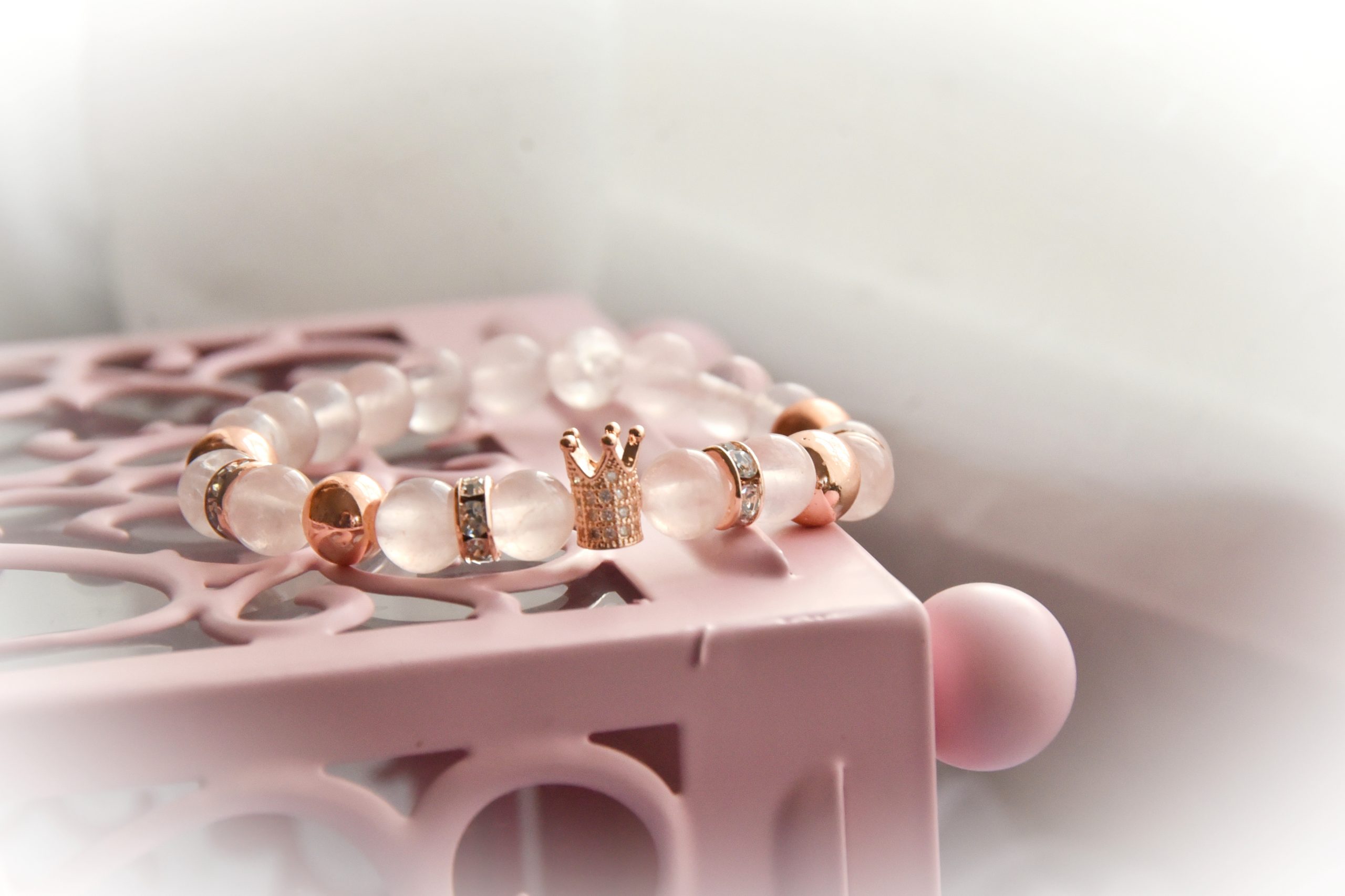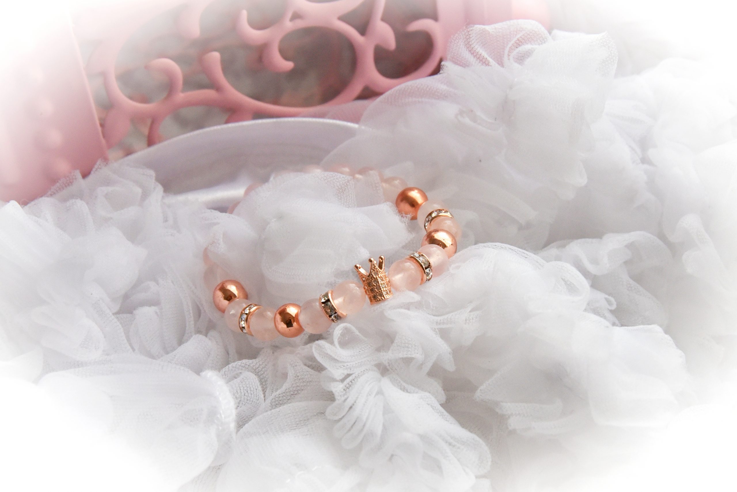 Koronás Rózsakvarc, Hegyikristály és Hematit Ásványkarkötő. Kézműves termék, gumidamillal, csillogó nikkelmentes rondellel, Cirkónia korona köztessel; valamint Hegyikristály, Hematit és Rózsakvarc ásvánnyal. Egyedi kérés és méret esetén, fordulj hozzám bizalommal!