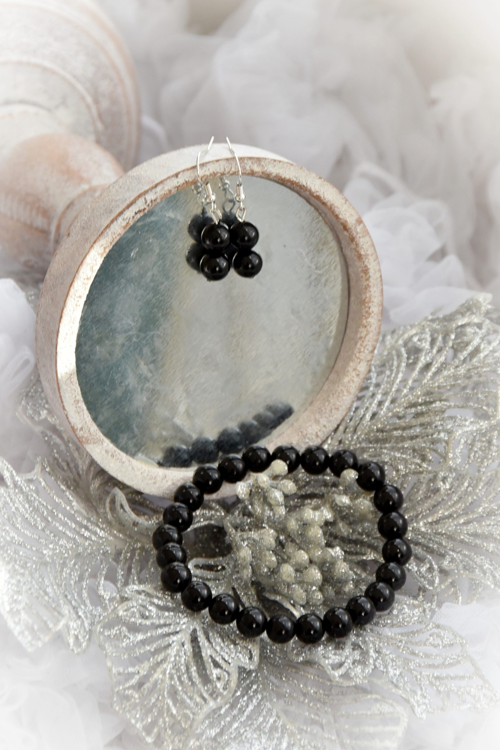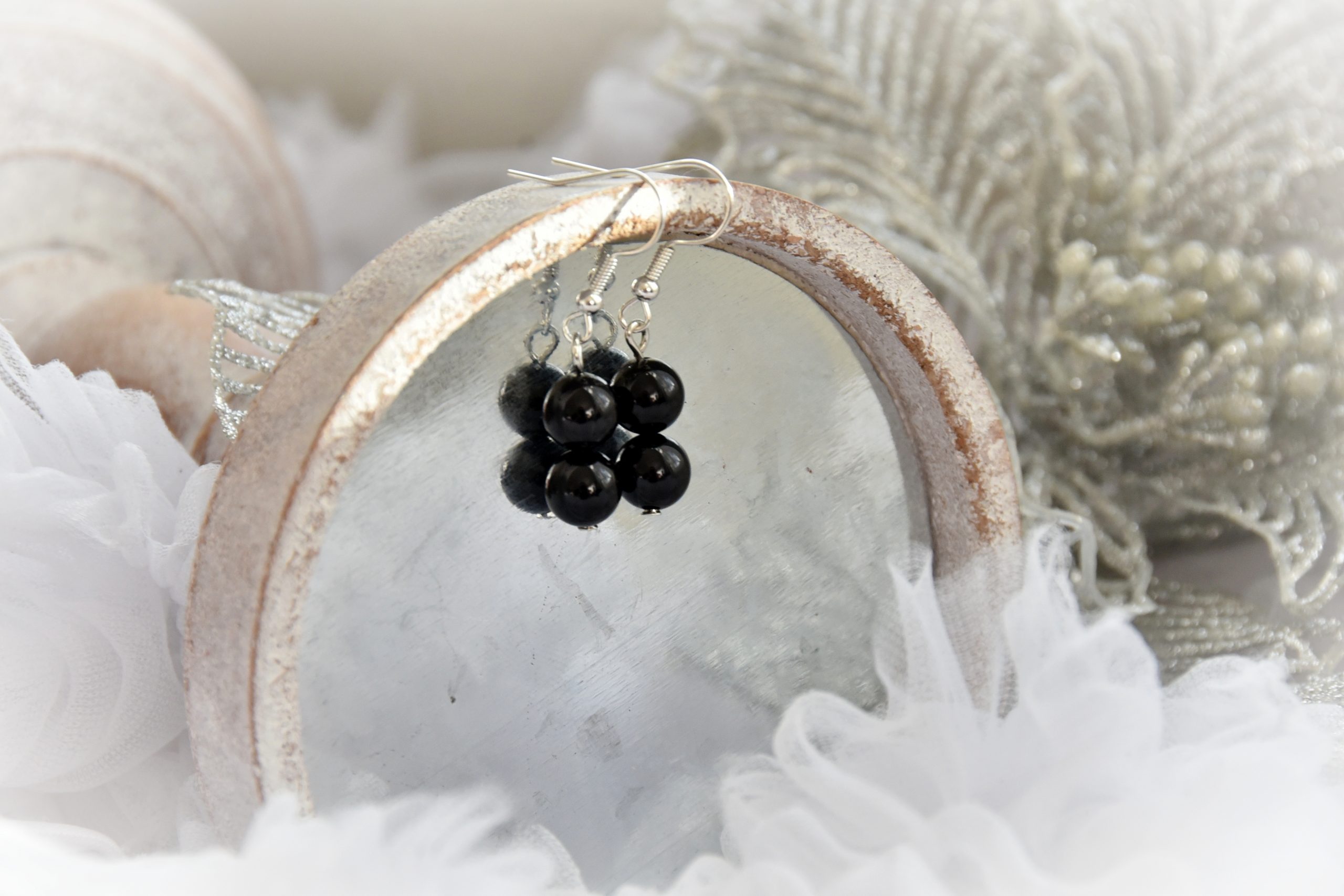 8mm-es Ónix ásványből készült kézműves fülbevaló, nikkelmentes szerelékkel. Válaszd ki a számodra megfelelő akasztó típust!