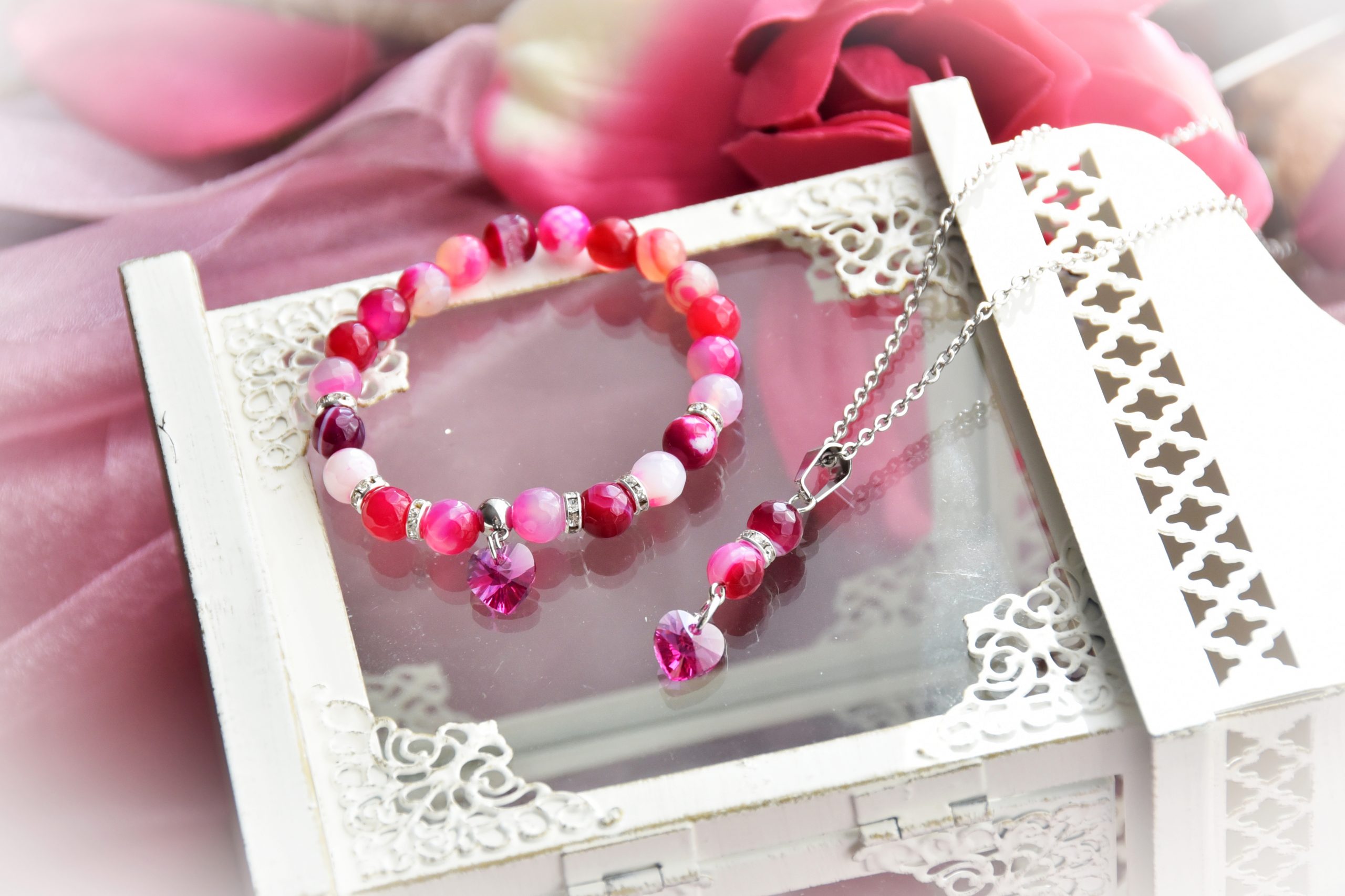 Pink Achát Swarovski Ásványszett