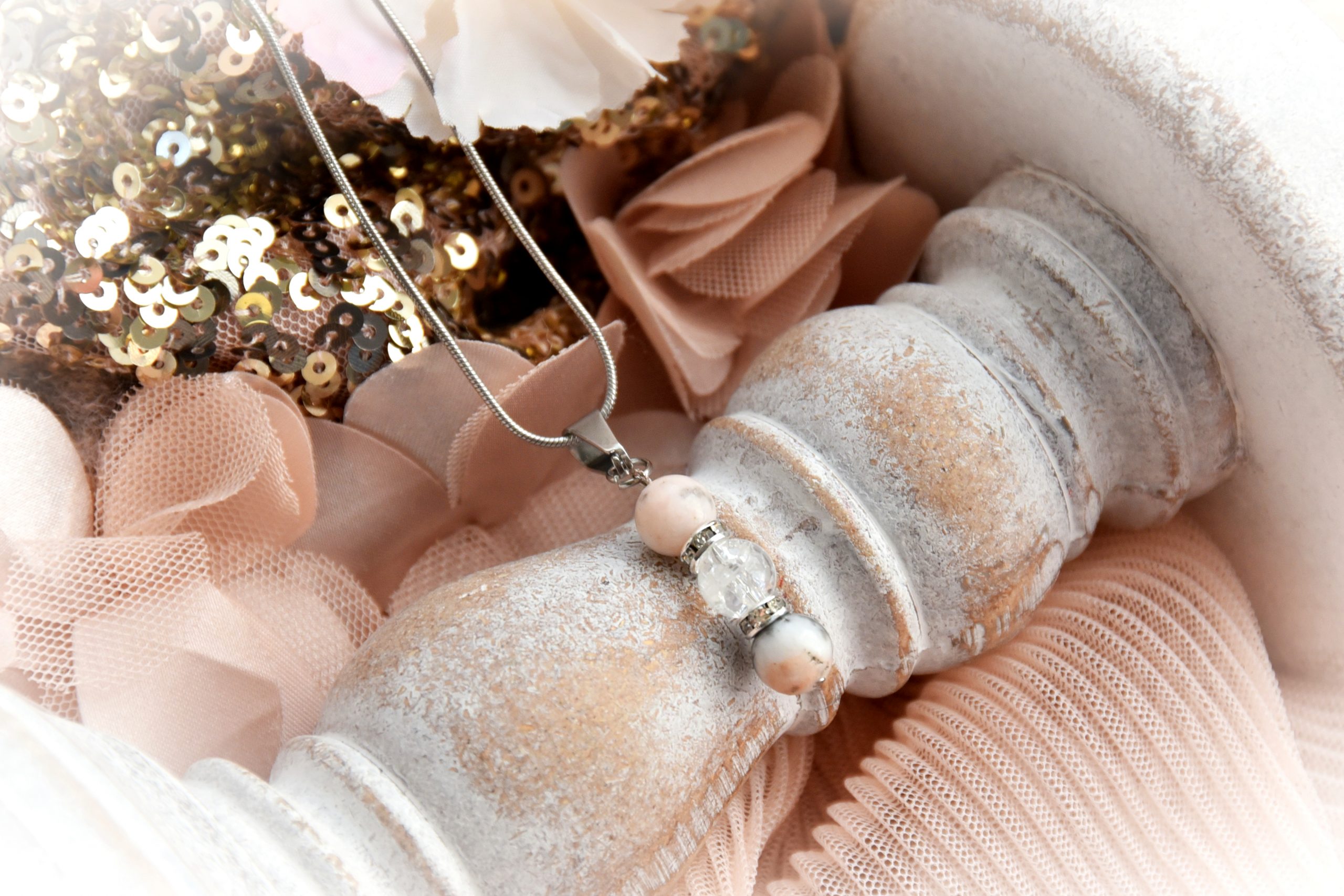 „Pink Zebra Jáspis és Roppantott Hegyikristály Nyaklánc” értékelése elsőként