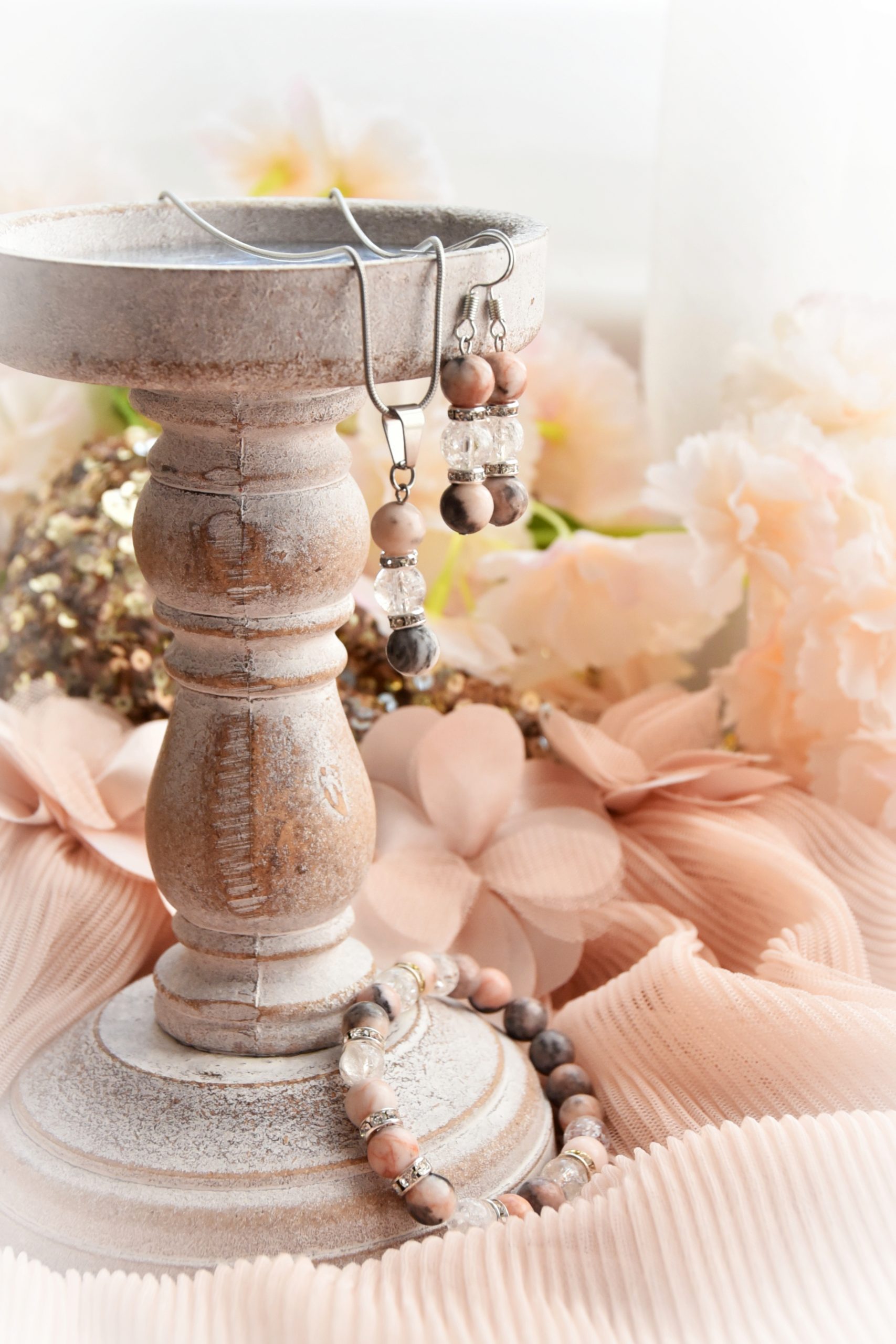 Pink Zebra Jáspis és Roppantott Hegyikristály 8mm ásványokból, nikkelmentes csillogó rondellel,orvosi kígyólánccal és szerelékkel készült nyaklánc. A lánc hossza: 45 cm. Egyedi kérés és méret esetén, fordulj hozzám bizalommal!
