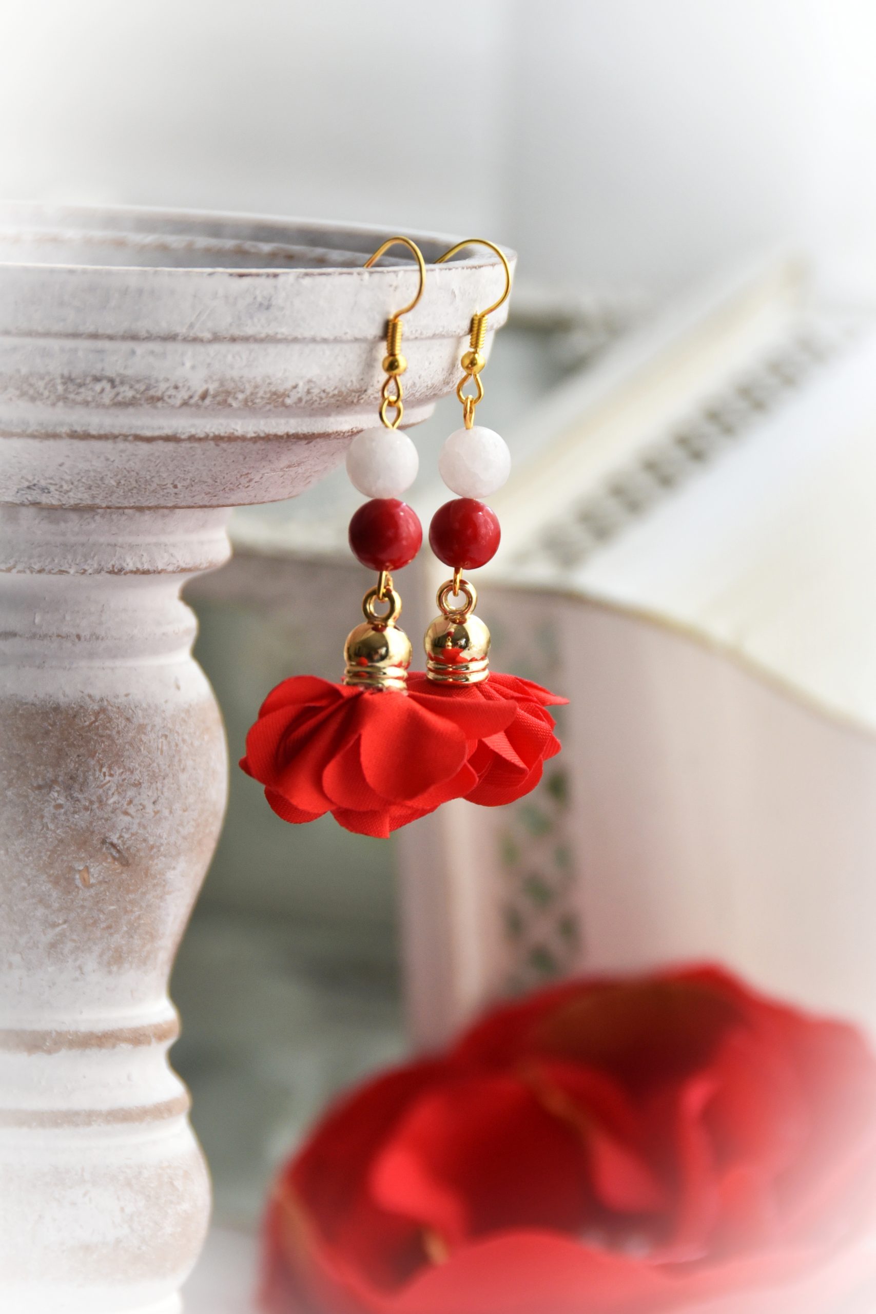 Piros és Fehér Jade Szoknyás Ásvány fülbevaló