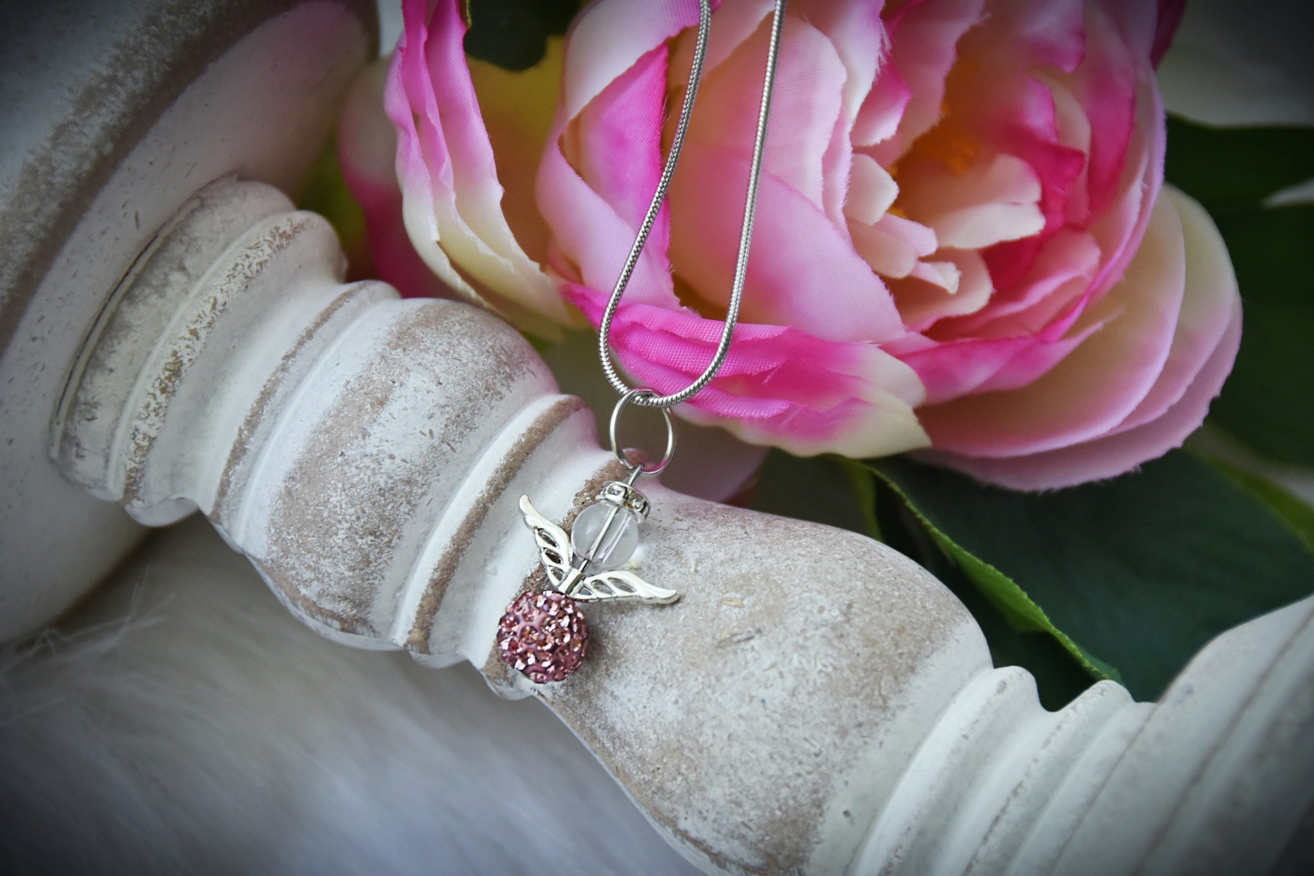 Rózsaszín Shamballa Hegyikristály Angyal medál/Nyaklánc