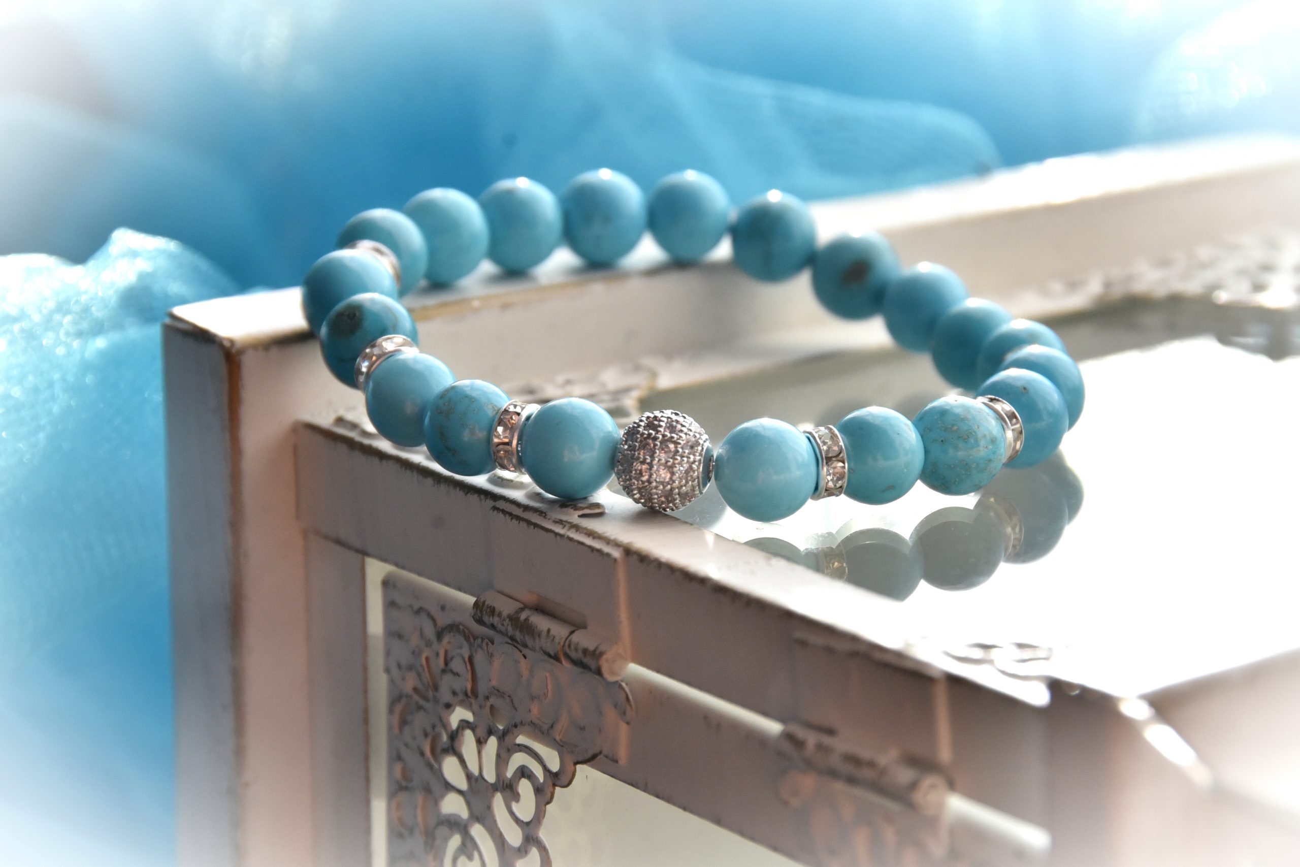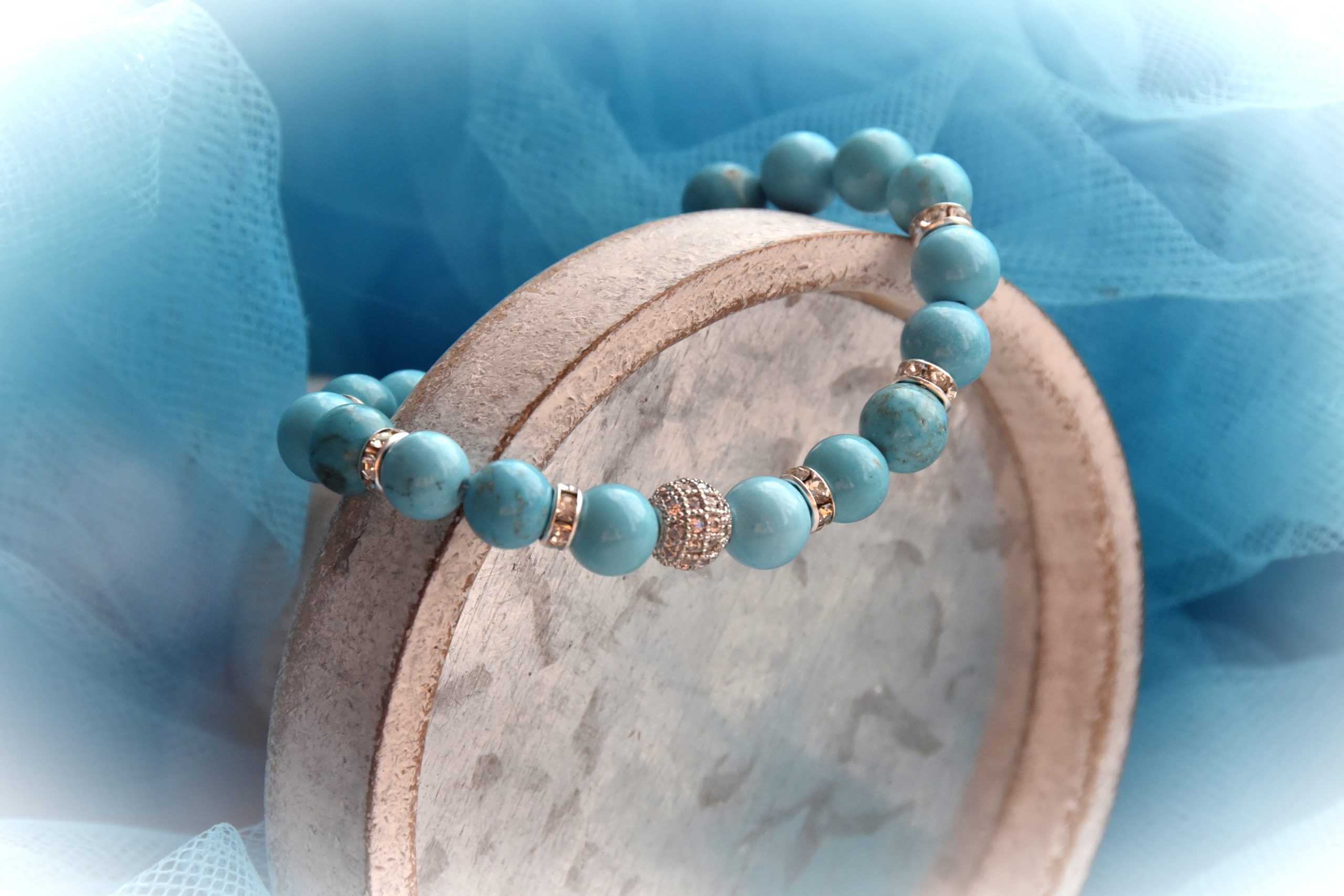 8mm-es Türkinit ásvánnyal, nikkelmentes csillogó rondellel és 8mm-es Cirkónia kristály gömmbbel díszített karkötő. Kézműves termék, válaszd ki a számodra megfelelő méretet! Egyedi kérés és méret esetén, fordulj hozzám bizalommal!